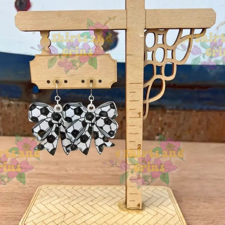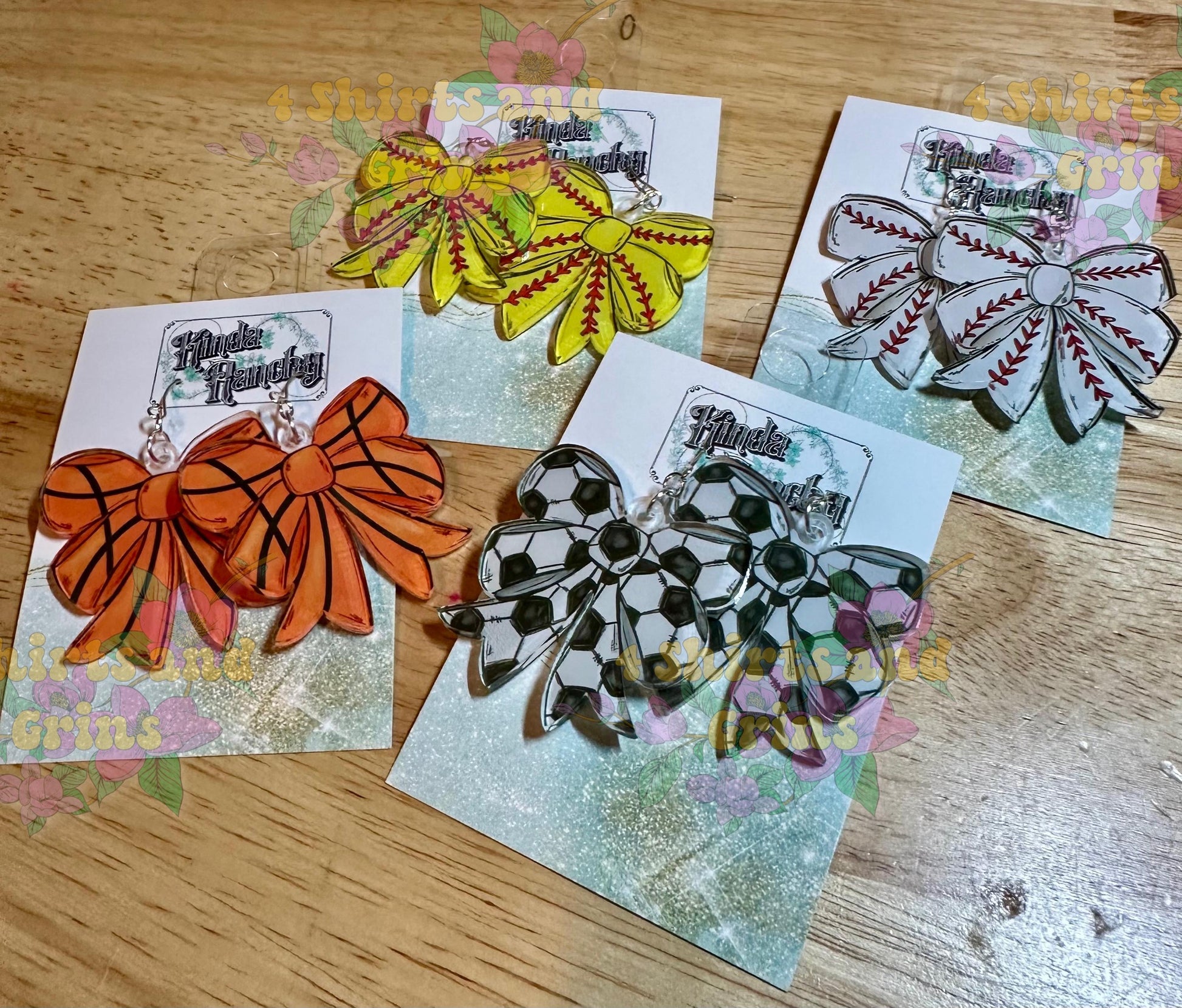 Acrylic Sports Bow Earrings | Softball, Baseball, Basketball, Soccer Statement Earrings – 2" Lightweight Dangles