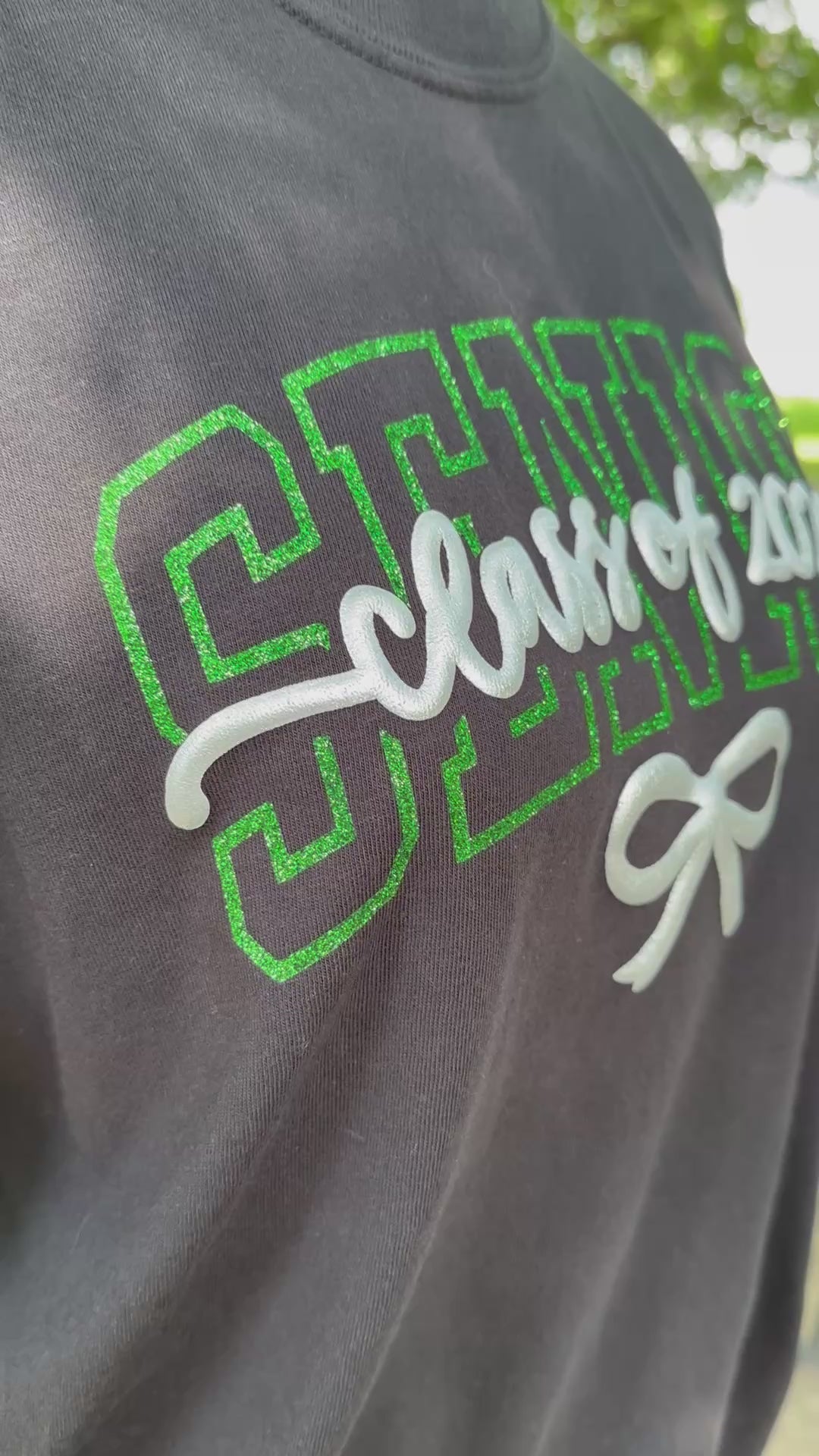 Custom Class of 2026 Senior Tee | Glitter & Puff Bow
