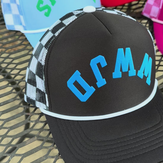 Custom Upside Down or Right Side Up Puff Trucker Hat | Checkered Mesh Back | 5-Panel High Crown Cap