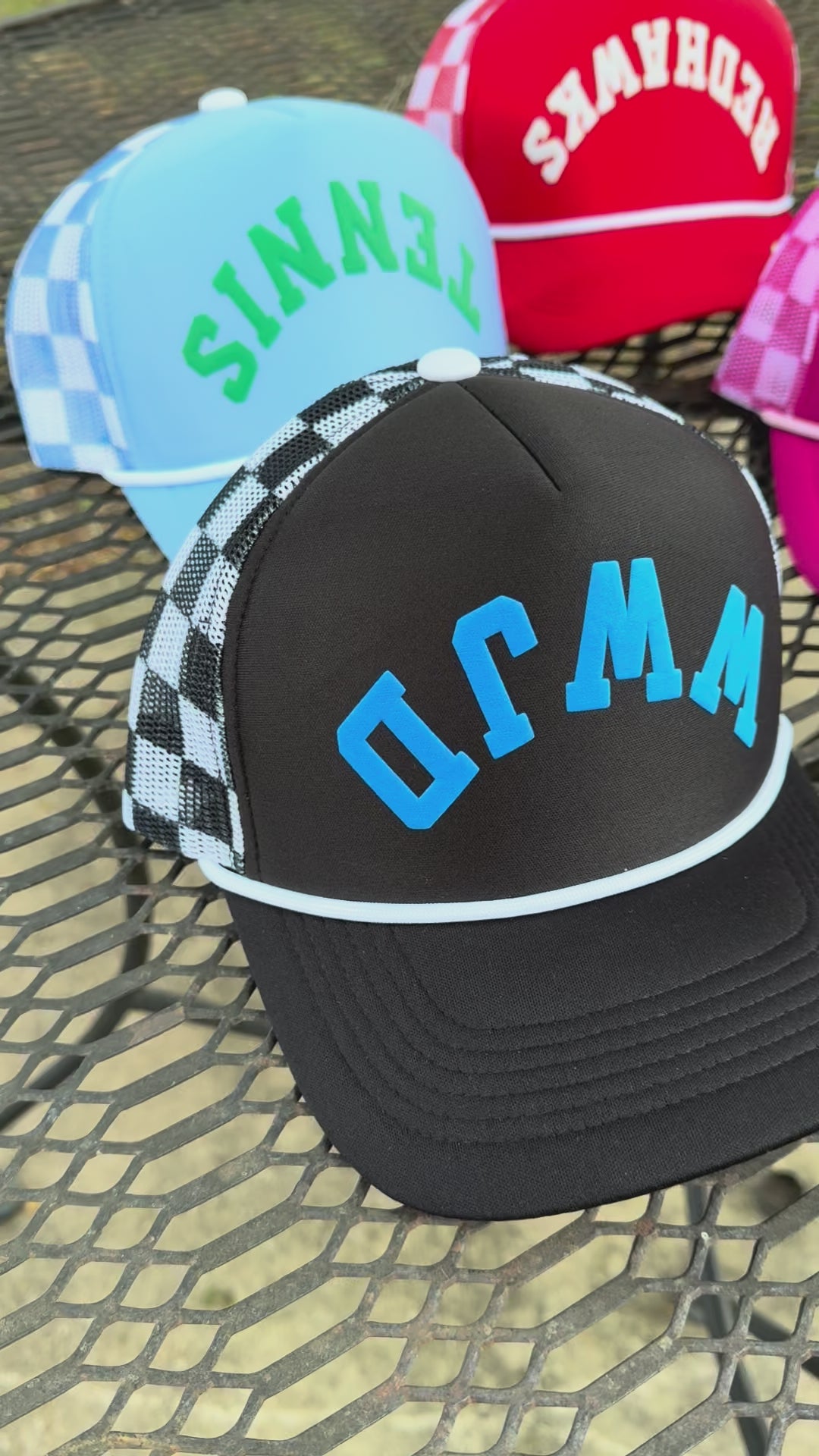 Our Custom Upside Down Puff Trucker Hat is the bold statement piece you didn’t know you needed. Featuring a retro checkered mesh back, high crown, and your custom wording in white puff vinyl — this hat is all about personality, comfort, and style.