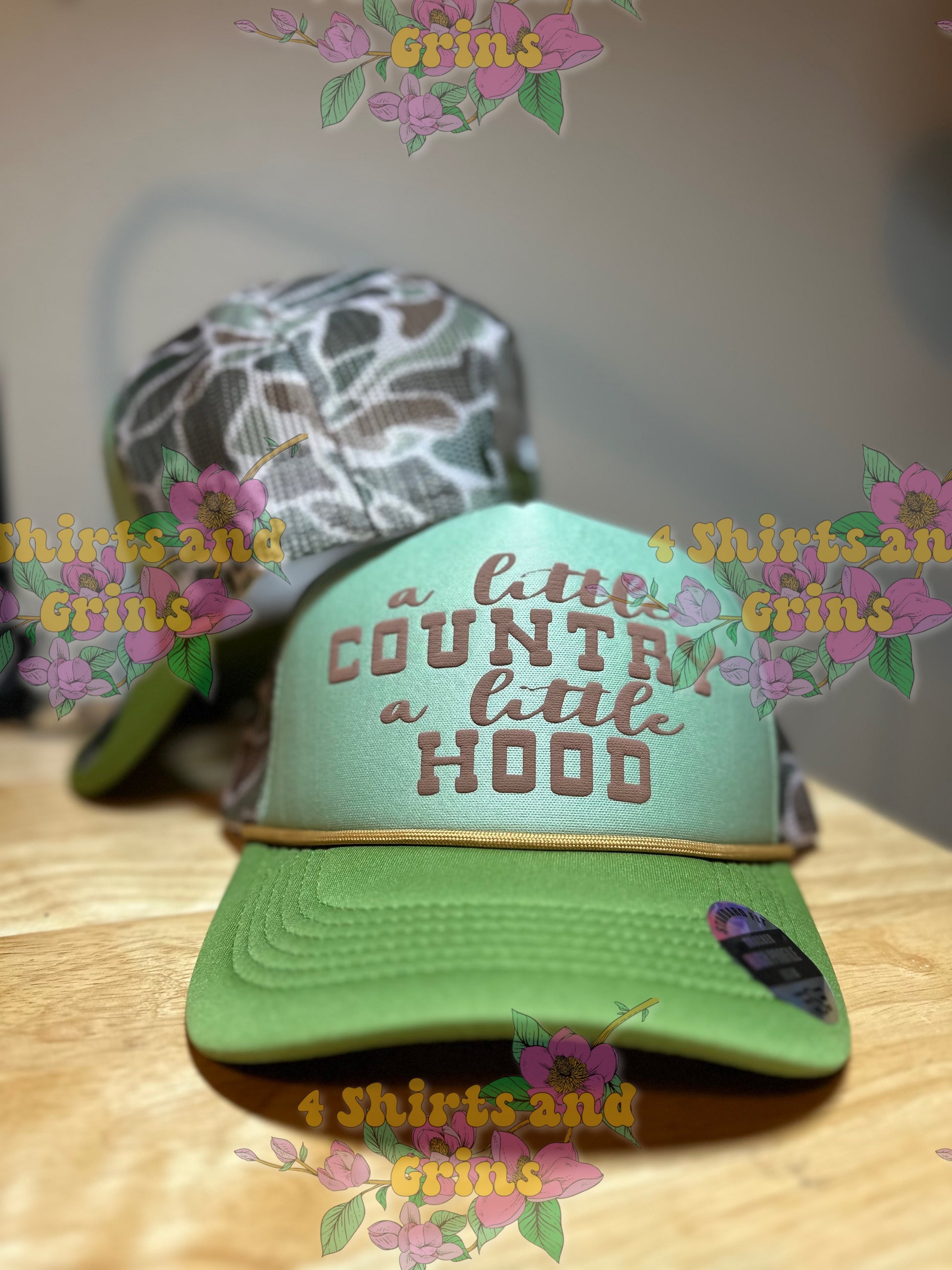 Custom Puff Trucker Hat | Camo Mesh Back | Green or Pink Front | Personalized Sayings | Choose Puff Vinyl Color
