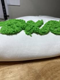 The vibrant green chenille script adds a textured, standout pop to a classic white sweatshirt — perfect for game days, school events, or just repping your team in comfort and style.