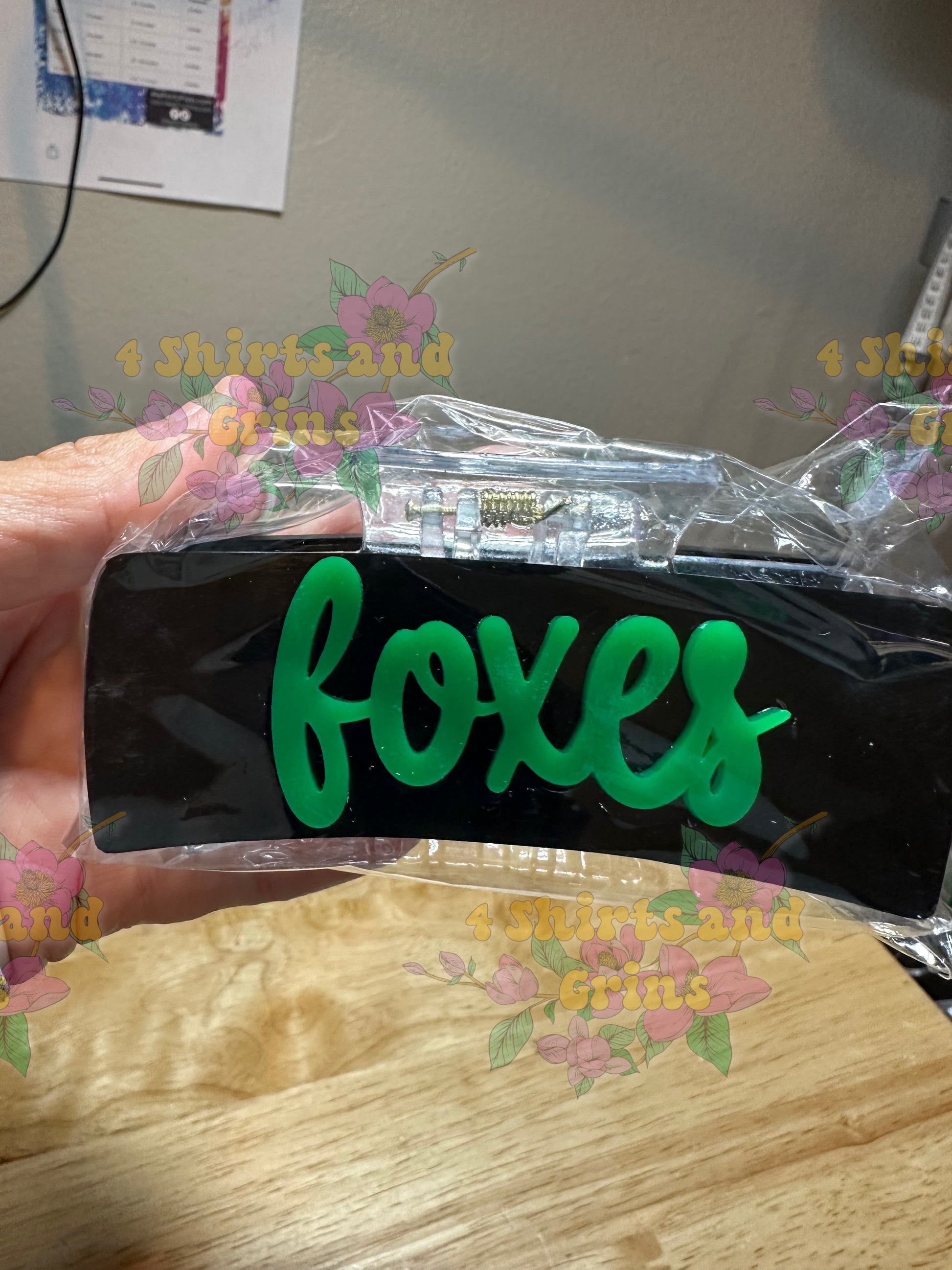 Foxes Hair Claw Clip | Large 4" Acrylic Spirit Claw | Glitter or Matte Green Game Day Hair Accessory | School Mascot Claw Clip for Sports Moms