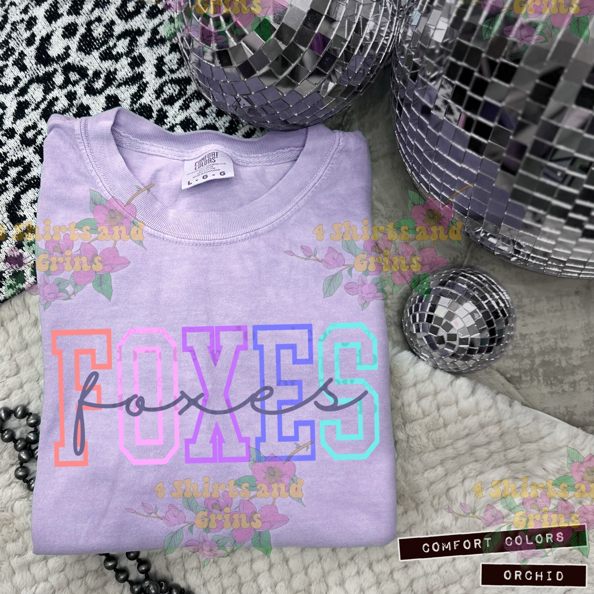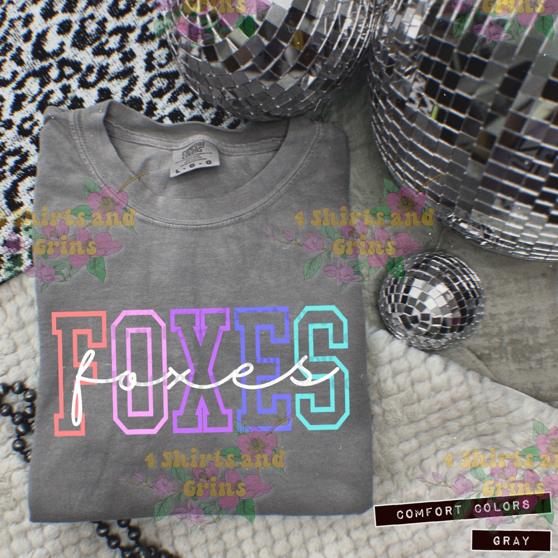 FOXES Rainbow Varsity Spirit Shirt – Youth & Adult Sizes – Comfort Colors® & Tultex Options – T-Shirt