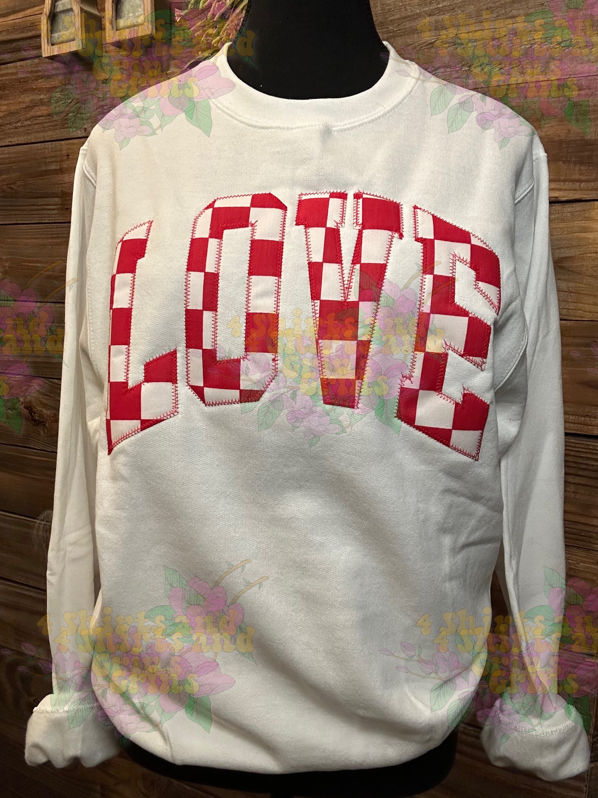 Spread the love (literally) with our Red Check Love Sweatshirt. This Port and Company sweatshirt is not only cozy and stylish, but also features a handmade applique embroidery that adds a unique touch. Show your love for fashion and handmade craftsmanship with this one-of-a-kind sweatshirt.