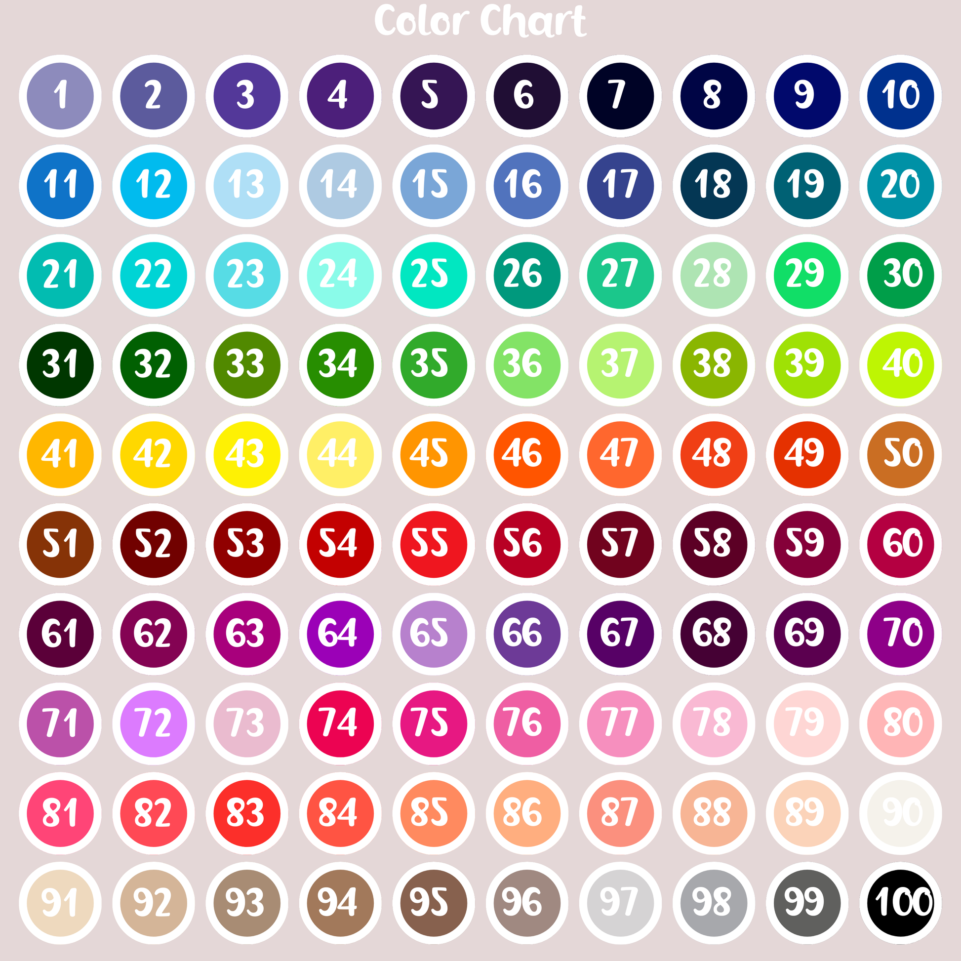 In the order notes or personalization box, include your color number from the chart